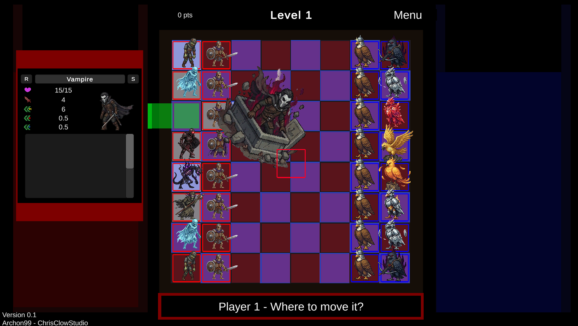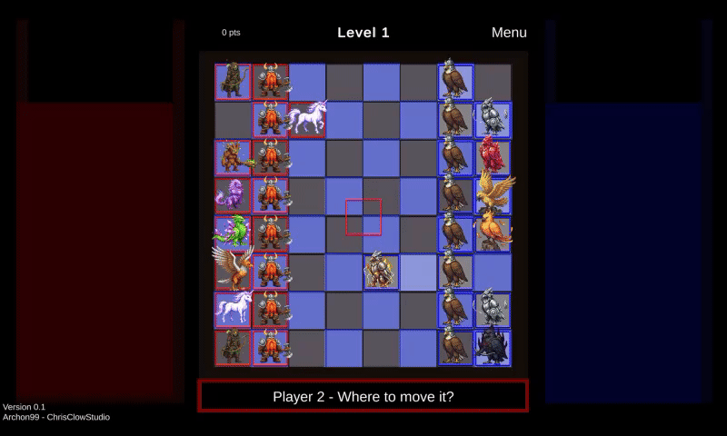 Custom mode is a versus mode where you can choose from 4 different factions with different pieces, following the classic Archon format.